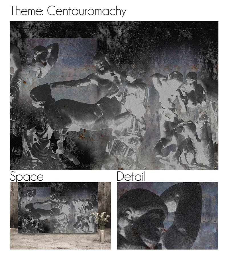 Στην εικόνα την βλέπουμε αποτυπωμένη και εφαρμοσμένη σε υλικό ταπετσαρίας.