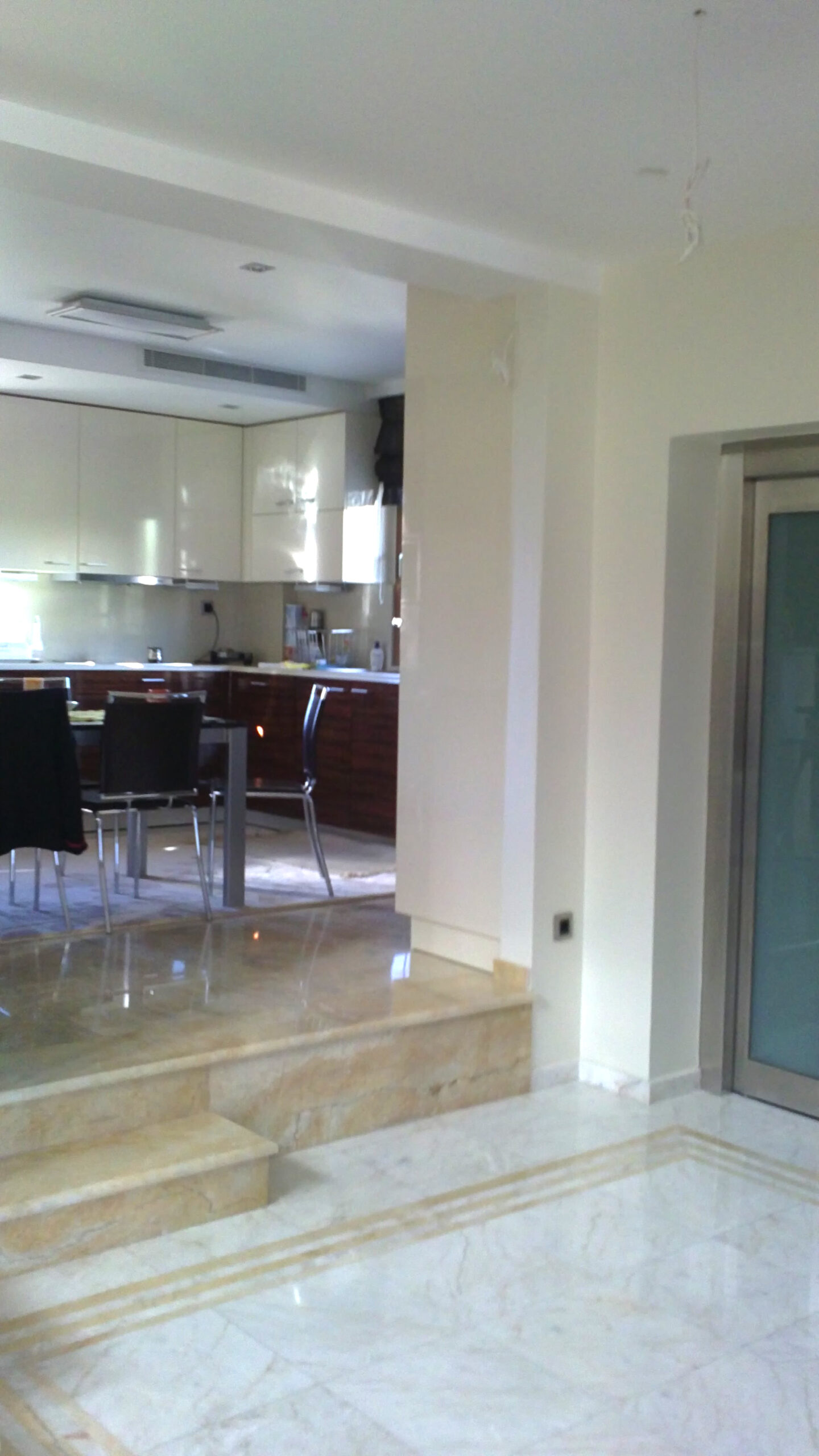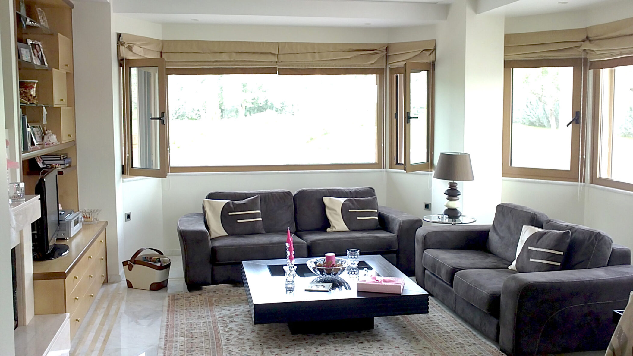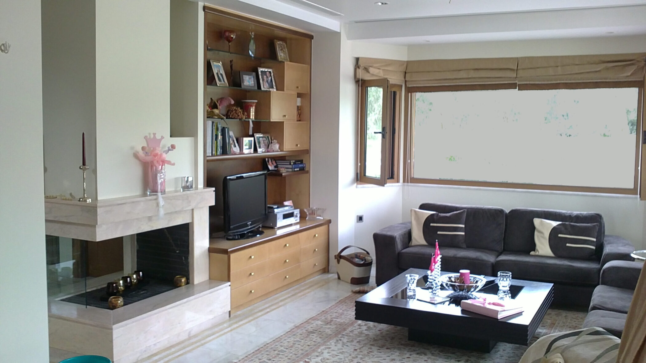 The materials used are luxuriously finished. The floor of the ground floor is specially selected Skyros marble, while the floors and the basement have special wooden floors. The handrail of the stairs is lazer cut and with a special oxidized bronze patina.